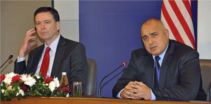 Bulgaristan'a resmi ziyarette bulunan ABD Federal Soruşturma Bürosu Başkanı James Comey (solda) ve Bulgaristan Başbakanı Boyko Borisov (sağda) yapılan görüşmenin ardından ortak basın toplantısı düzenledi.Muhabir: İhvan Radoykov