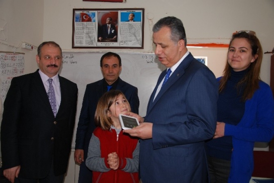İlk olarak bahçede oyun oynayan çocuklarla sohbet eden Kaymakam Şevket Cinbir, daha sonra Sınıfları gezdi. 3/B sınıfında okuyan Havva İmge Yılmaz’ı da sınıfında ziyaret eden Cinbir, başarılı çalışmasından dolayı tablet hediye etti.