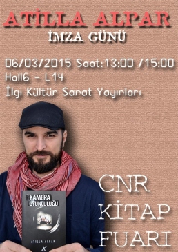 Çeşitli dizilerde rol alan ve Kurtlar Vadisi Pusu’da ‘Şamil’ (Küpeli) karakteriyle tanınan oyuncu Atilla Alpar, Türkiye’de daha önce yapılmamış akademik nitelikli Kamera Oyunculuğu adlı kitabı için düzenlenecek imza gününde okurlarıyla buluşacak. 6 Mart Cuma günü İstanbul CNR kitap fuarındaki imza günü, saat 13:00-15:00 saatleri arasında gerçekleştirilecek.