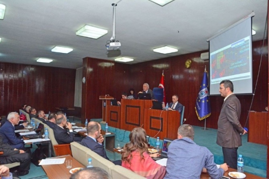 Meclis toplantısına, Belediye Başkan Yardımcıları Mehmet Özdoğan, Murat Arık, Galip Gültekin, Fatih Kölgeli meclis üyeleri ve belediye daire müdürleri katıldı.(EFE)