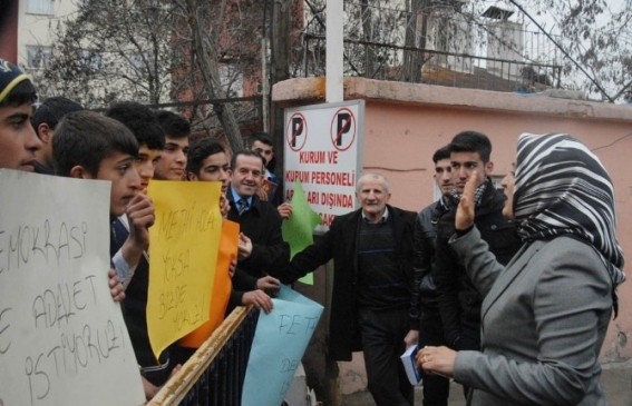 Şırnak İmam Hatip Lisesi Müdür Yardımcısı Methi Seven’in görev yerinin değişmesini protesto eden İmam Hatip Lisesi öğrencileri “Paralı eğitim istemiyoruz”, “’Demokrasi ve adalet istiyoruz”, “Methi hoca yoksa bizde yokuz?” dövizleri taşıdı. Şırnak İmam Hatip Lisesi 12’ci sınıf öğrencisi Vehti Encü, hocalarının haksız yere görev yerinin değiştiğini söyledi. Encü, "Müdür yardımcımın görev yeri değişti. Biz hocamızı geri istiyoruz. Ben 12. sınıfım YGS’ye hazırlanıyorduk, o da bize çok yardımcı oluyordu, bize kitap alıyordu, derslerde yardımcı oluyordu. Bütün kaynakları getiriyordu. Kendi cebinden para verip bize deneme testleri alıyordu. Okul müdürümüzle tatsızlık yaşadılar ve okul müdürü onu okulda istemiyordu ve hocamızı başka yere verdiler. Bizde hocamızı geri istiyoruz. Çünkü bize çok yardımcı oluyordu. Bizde okuldan buraya kadar geldik. Burada sesimizi duyurmaya çalışıyoruz" dedi.