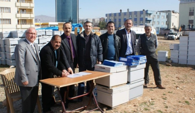 Arıcı barınağı ve boş kovan müdürlük yetkilileri tarafından düzenlenen törenle arıcılara dağıtıldı.
