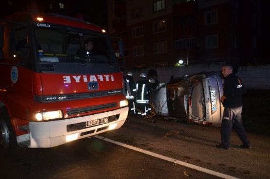 Edinilen bilgiye göre, Bülent Ecevit Bulvarında Çorlu Park Kavşağına seyir halinde olan Sertaç T. yönetimindeki 59 ZL 965 plakalı otomobil takla attı. Kazada, ters dönen araç içerisinde bulunan 33 yaşındaki Sertaç T., 16 yaşındaki Barkın B. ile Galip B., kazayı gören diğer sürücülerin yardımıyla araçtan çıkarıldı.