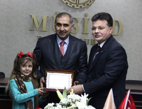 Mardin’e atanan Vali Ömer Faruk Koçak’a, yaptığı hizmetlerden dolayı Elazığ MÜSİAD şubesi tarafından plaket takdim edildi.