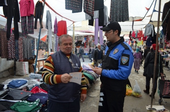 Kula İlçe Emniyet Müdürlüğü ekipleri, son günlerde artan dolandırılık olaylarına karşı vatandaşlara uyarıcı broşürler dağıttı.