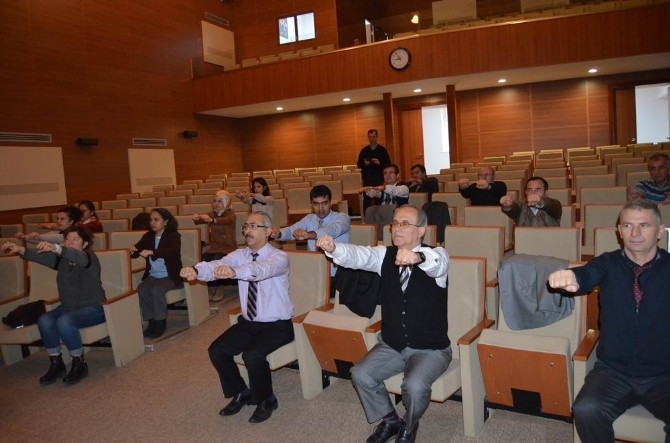 Necatibey Eğitim Fakültesinde, toplumun fiziksel aktivite konusunda bilinçlendirilmesi için Sağlık Bakanlığınca tüm Türkiye genelinde başlatılan “Yaşamın Her Alanında Fiziksel Aktivite” kampanyası çerçevesinde “Masa Başı Egzersiz” etkinliği gerçekleştirildi. Kampanya çerçevesinde Konferans Salonunda gerçekleştirilen etkinlik ile çalışanlar arasında fiziksel aktivitenin önemine dikkat çekmek, sağlıklı davranış ve yaşam tarzlarını teşvik etmek amaçlandı. Bu kapsamda Necatibey Eğitim Fakültesi personeli de günlük mesailerine spor yaparak başladı. Konuyla ilgili açıklamalarda bulunan Necatibey Eğitim Fakültesi Dekan Vekili Prof. Dr. Fatih Satıl; “Sağlık Bakanlığınca tüm Türkiye genelinde yürütülen bu kampanya kapsamında; personelimize düzenli fiziksel aktivite alışkanlığı kazandırmak, spor bilincini geliştirmek ve iş yaşamında verimi artırmak amacıyla Halk Sağlığı Müdürlüğünce görevlendirilen uzmanlarca sabah saat 8.30’da 15 dakikalık bir egzersiz programı yapılmaya başlanmıştır” dedi.