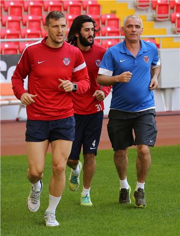 Mersin İdmanyurdu, Spor Toto Süper Lig'de bu hafta sahasında yapacağı Trabzonspor maçının hazırlıklarını Mersin Stadyumu'nda yaptığı çalışmayla sürdürdü. Mitrovic (solda) ve Adem Güven (ortada) takımdan ayrı koşu yaptı.Muhabir: Anıl Bağrık