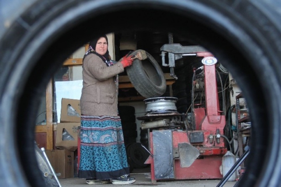 Giresun’da lastik tamirciliği yapan 3 çocuk annesi 38 yaşındaki Makbule Yıldırım, kadınların meslek ayırt etmeksizin her işi yapabileceğinin en güzel örneklerinden birini sergiliyor.