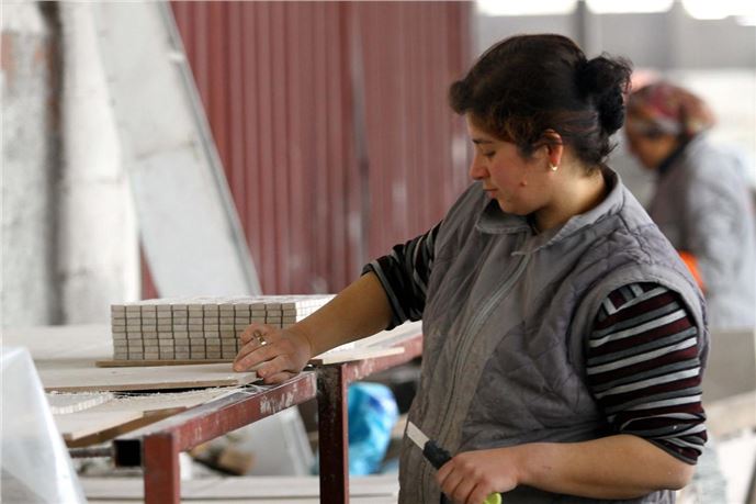 Muğla'nın Seydikemer ilçesindeki mermer fabrikasında kadınlar, yıkama, ayıklama, temizleme, paketleme ve mozaik işlerinde çalışıyor.Muhabir: Utku Uçrak