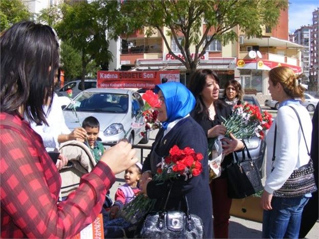 Milliyetçi Hareket Partisi (MHP) Adana İl Kadın Kolları teşkilatları, 8 Mart Dünya Kadınlar Günü dolayısıyla kadınlara kırmızı karanfil dağıttı.