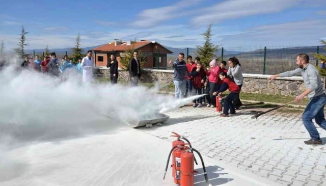 Gerçeğini aratmayan tatbikat kapsamında öğrenciler ve görevliler sınıflardan güvenli bir ortamda boşaltılırken, meydana gelen yangınlar da söndürme cihazları yardımıyla başarılı bir şekilde söndürüldü.