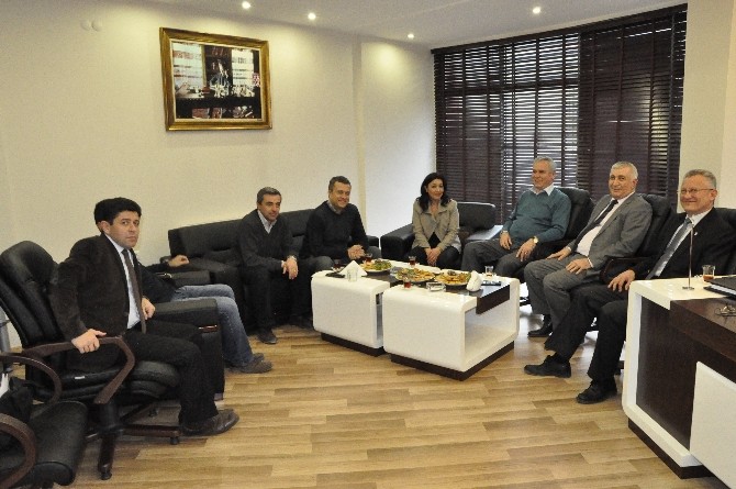 ESMMMO Yönetim Kurulu Başkanı S. İlker Özokçu, Yönetim Kurulu Başkan Yardımcısı Servet Onurlu ve Yönetim Kurulu Üyesi Bekir Kır ile görüşen TMMOB Eskişehir İKK Sekreteri Neşet Aykanat, İMO Eskişehir Şubesi Yönetim Kurulu Başkanı Bülent Erkul, Mimarlar Odası Eskişehir Şubesi Yönetim Kurulu Başkanı Canan Oytan, MMO Eskişehir Şubesi Yönetim Kurulu Başkanı Hakan Ünal ve MMO Eskişehir Şubesi Sekreteri Atila Tomsuk, bir süre fikir alışverişinde bulundular.