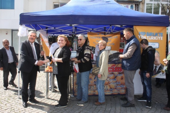 AK Parti İzmir 2. Bölge Milletvekili aday adayı Hakkı Atila, geçtiğimiz günlerde Mersin’in Tarsus ilçesinde hunharca katledilen Özgecan Aslan olmak üzere, hayatını kaybeden tüm kadınlar için bir taraftan lokma döktürdü, diğer taraftan da karanfil dağıttı.
