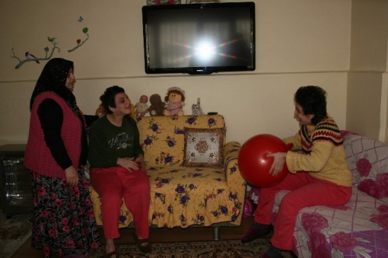 Akraba evliliği sonucu doğan 4 kızıyla çok rahat bir şekilde iletişim kurduğunu belirten anne Tarım, “30 yaşındaki Vildan, 29 yaşındaki Nagihan, 21 yaşındaki Mihriban, ve 20 yaşındaki Elif zihinsel özürlü olarak doğdu. Çocuklarım her dediğimizi anlarlar, anlamadıkları hiçbir şey yok. Babasıyla konuşurken bile sessiz konuşuruz ne dediğimizi anlamasınlar diye. Birbirimizle rahat iletişim kurabiliyoruz o yönde bir sıkıntımız yok. Sevdiğim zamanı da kızdığım zamanı da anlarlar. Zekâları o kadar geri değil. 24 saatim hep onlarla geçer. Benim ne gecem gece, ne gündüzüm gündüz. Hiçbir yere gidemiyorum. Sağlıklı bir insandım özürlü oldum. Çünkü yürüyemedim, yürümeyi unuttum. Eşimle amca çocuklarıyız. İlk çocuğumda 3 aya kadar hiçbir şey hissetmedik. Sonradan havale geçirdi, ikinci oldu aynı, sonra 10 yıl çocuk yapmadık. Sonra aile baskılarından dolayı iki tane daha oldu ikisi de aynı oldu. Bir kızım hariç diğer üç kızımı zaman zaman gezdirebiliyorum” dedi.