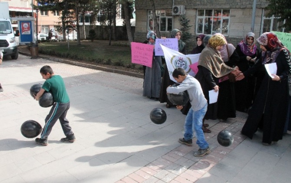 Elazığ’da İnsan Hak ve Hürriyetleri İnsani Yardım Derneği (İHH) tarafından, 8 Mart Dünya Kadınları Günü nedeniyle siyah balonlarla basın açıklaması yapıldı. Basın açıklaması öncesinde balonları yerde gören çocukların balonları alarak kaçması dikkat çekti.
