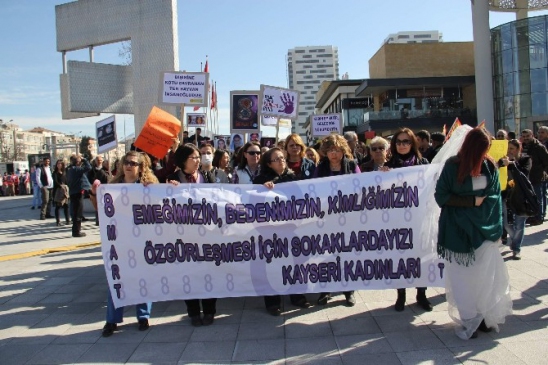 Sivas Caddesi’nden Cumhuriyet Meydanı’na yürüyen kadınlar 8 Mart Dünya Kadınlar Günü’nde kadına yönelik şittede ’Hayır’ dedi. Cumhuriyet Meydanı’nda açıklama öncesinde bir babanın eşi ve çocuklarına uyguladığı şiddeti anlatan, kadınların oynadığı tiyatro oyunu sahnelendi.
