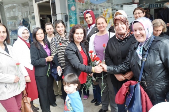 Adalet ve Kalkınma Partisi (AKP) Ödemiş Kadın Kolları Teşkilatı, 8 Mart Dünya Emekçi Kadınlar Günü nedeniyle Ödemişli kadınlara karanfil dağıttı.