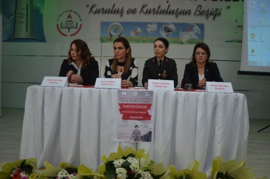 Programa konuşmacı olarak katılan Yaşam Koçu Nuran Özsöz, İş Kadını N. Filiz Eğilmez, J. Astsubay Çavuş Özlem Kopan ve İş Kadını Vildan öztürk, kariyer günleri kapsamında rol model olarak, iş hayatlarını ve yaşam tecrübelerini salonda bulunan kız öğrencilere ve dinleyicilere aktardılar.
