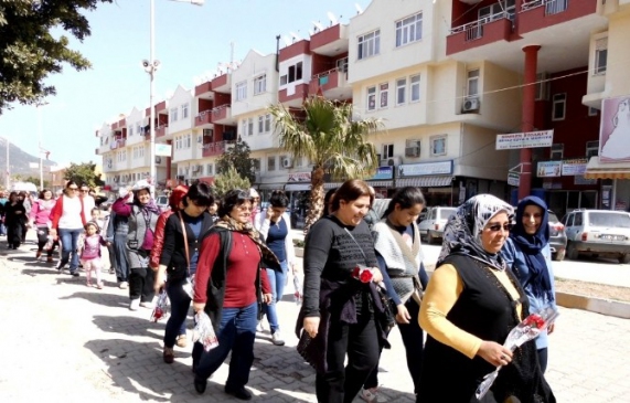 Etkinliğe Garnizon Komutanı Yüzbaşı Savaş Cingöz, Sahil Güvenlik Komutanı Fatih İkinci, İlçe Mal Müdürü Nurettin Ayrılma, Tapu Müdürü Mustafa Çetinsağ, İlçe Sağlık Müdürü ve Toplum Sağlığı Merkezi Tabibi Dr. Ahmet Hakan Acı ile çalışanları, Devlet Hastanesi personeli, okul müdürleri, öğretmenler, öğrenciler ve çoğunluğunu kadınların oluşturduğu vatandaşlar katıldı. Cumhuriyet Meydanında toplanan katılımcılara üzerinde ‘Kadınlar Baş Tacımızdır’ yazılı kartların bulunduğu kırmızı karanfiller dağıtıldı. Yürüyüş etkinliği Cumhuriyet Meydanından başlayıp, Belediye Binası önünden devam ederek Sini Çayı Köprüsünden geçip sahil yolundan Müftülük Konferans Salonu önünde son buldu. Yürüyüş sonunda konuşan Dr. Ahmet Hakan Acı, son yıllarda ülkemizde ve dünyada her türlü şiddetin arttığını, yaş, cinsiyet, ırk, din, dil, eğitim düzeyi ayırt etmeksizin toplumdaki bütün bireyleri etkileyen şiddetin giderek günlük yaşamın bir parçası haline gelmeye başlandığını belirterek, "Şiddet, kişinin, fiziksel, cinsel, psikolojik veya ekonomik açıdan zarar görmesiyle veya acı çekmesiyle sonuçlanan veya sonuçlanması muhtemel hareketleri, buna yönelik tehdit ve baskıyı ya da özgürlüğün keyfi engellenmesini de içeren, toplumsal, kamusal veya özel alanda meydana gelen fiziksel, cinsel, psikolojik, sözlü veya ekonomik her türlü tutum ve davranıştır. Kadına yönelik şiddet, yalnızca kadın oldukları için uygulanan veya kadınları etkileyen cinsiyete dayalı bir ayrımcılık ile kadının insan hakları ihlaline yol açan ve Kanunda şiddet olarak tanımlanan her türlü tutum ve davranış biçimidir” dedi.