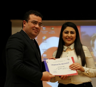 Atakum Belediyesi Özgecan Kadın Koordinasyon ve Sosyal Hizmet Merkezi gönüllü yöneticisi Fatma Taşçı ve OKTAM Müdürü Doç. Dr. İlknur Aydın Avcı ise panel sonunda katılımcılara teşekkür belgesi ve çiçek takdim etti.