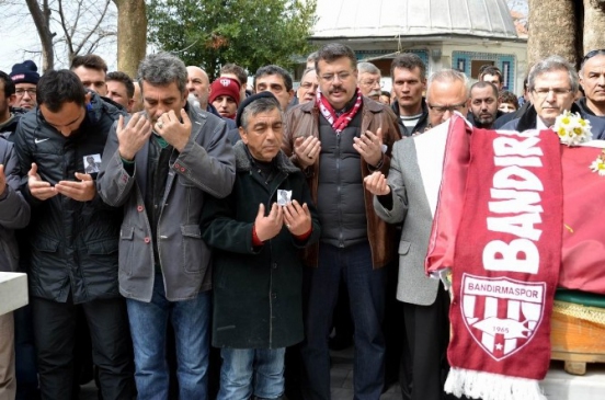 Gümüşhane’de futbol maçı sonrası tribünde kalp krizi geçirerek hayatını kaybeden Bandırmaspor taraftarı, memleketi Balıkesir’in Bandırma ilçesinde toprağa verildi.