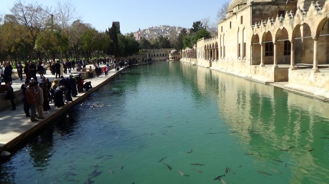 Şanlıurfa ve çevre illerden gelenler erken gelen baharın tadını çıkarmak için Hz. İbrahim’in ateşe atıldığı yer olarak bilinen Balıklıgöl Yerleşkesi’ne akın etti.