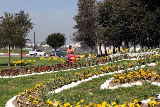 Baharın müjdesini veren rengarenk laleler, büyük beğeni topluyor. Mevsimlik dikilen menekşe ve bellis çiçekleri ise renk armonisi oluşturuyor. Park ve Bahçeler Müdürlüğü ekiplerinin, geometrik şekil ve figürler kullanarak yaptığı çalışmalar Antalya’yı çiçek bahçesine dönüştürdü.