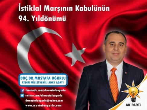 AK Parti Milletvekili Aday Adayı Doç.Dr. Mustafa Oğurlu, İstiklal Marşı’nın kabul edilişinin 94. yılında kutlama mesajı yayınladı.
