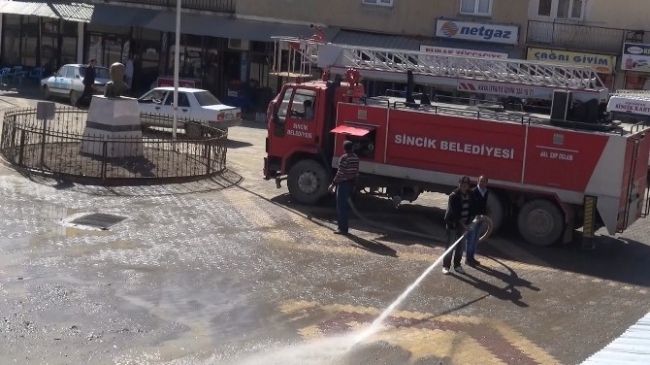 Sincik’te havaların ısınmasıyla birlikte Belediyeye ait İtfaiye ekipleri harekete geçti. İtfaiye ekipleri ilçe merkezinde cadde ve kaldırımları tazyikli suyla yıkayarak temizledi. Kıştan kalan ve kaldırımlara biriken tozlar tazyikli su ile yıkandı. Sincik Belediye Başkanı Mehmet Korkut konuyla ilgili yaptığı açıklamada, “Çetin geçen kış şartları nedeniyle cadde ve sokaklarımızda kar ve yağmur sularından dolayı toz toprak birikti, itfaiye aracımızla işçilerimiz tazyikli su ile biriken toz toprağı temizleyip yıkamaya çalışıyoruz. Araçların geçişi esnasında ana caddemizde ciddi anlamda toz meydana geliyor, bu durum esnafımızı, vatandaşlarımızı mağdur ediyor, bu mağduriyeti bertaraf etmeye çalışıyoruz. İlçe merkezinde kilit taş olan tüm cadde ve sokaklarımızı tazyikli su ile yıkayacağız” dedi.