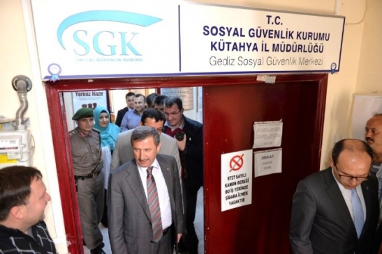 Gediz Organize Sanayi Bölgesi (GOSB) Müteşebbis Heyet Toplantısı için Gediz ilçesine giden Kütahya Valisi Şerif Yılmaz, Gediz Sosyal Güvenlik Merkezi hizmet binasında incelemelerde bulundu.