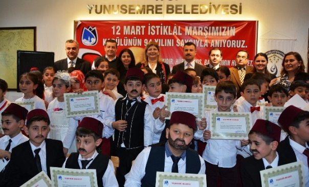 Yunusemre Belediyesi ve 8 Eylül İlkokulu tarafından düzenlenen İstiklal Marşı’nın Kabulü’nün 94. yılı etkinliği Yunusemre Belediyesi Nikah Salonu’nda gerçekleştirildi. Etkinliğe, Yunusemre Belediye Başkanı Dr. Mehmet Çerçi, Yunusemre Belediye Başkan Yardımcıları Ramis Şiyak ve Şule Uygur ile Yunusemre İlçe Milli Eğitim Müdürü Recep Şengül, Yunusemre Toplum Sağlığı Merkezi Sorumlu Hekimi Uzman Doktor Ümit Atman, Yunusemre Belediyesi Meclis Üyeleri ve 8 Eylül İlkokulu okul yöneticileri katıldı.