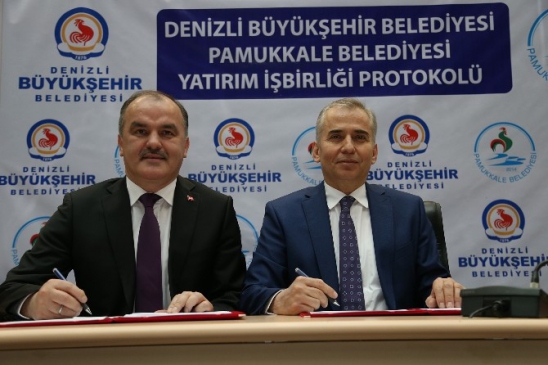 Denizli Büyükşehir Belediye Başkanı Osman Zolan ve Pamukkale Belediye Başkanı Hüseyin Gürlesin, iki belediye arasında "Yatırım İşbirliği" protokolü imzaladı.