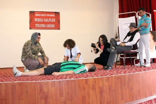 Denizli Devlet Hastanesi’nde görevli personeller Harun Avcı, Zehra Gönül, Ali Gönül, Nursel Ceylan, Mustafa Şen, Ferhat Akyol , Ramazan Kaplan ve Sağlık Otelciliği Müdürü Abdullah Tok’dan oluşan Neşeli Kalpler Tiyatro Grubu, Çağan Gelişim ve Sanat Akademisi Tiyatro Eğitmeni Serdal Ercan yönetiminde hazırladıkları tiyatro gösterisini sağlık çalışanlarına sundu.