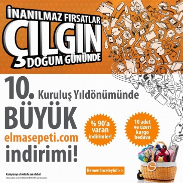 Türkiye’nin sektöründe öncü şirketi olan Elmasepeti, 10. yılını avantajlı bir kampanya ile kutluyor. Elmasepeti, bu kampanyasında özel önem verdiği tüketicilerine yüzde 90’a varan indirim fırsatı sunarak, 10. yaşını şölene çevirmeyi planlıyor.