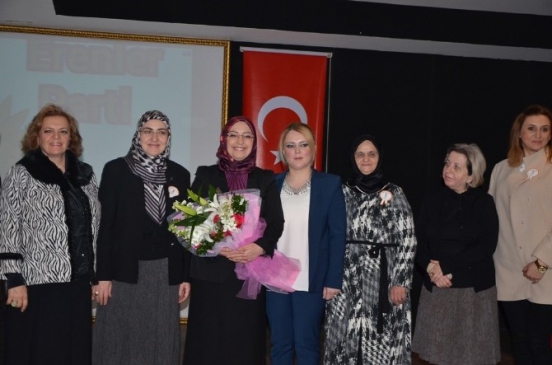 Programın açılış konuşmasını yapan AK Parti Erenler İlçe Kadın Kolları Başkanı Belgin Demirağ, “Kadınlarımızın gelişiminde önünde bulunan engeller kaldırılmalı ve ailesine yaşadığı çevreye millete faydalı bir birey olması için bütün imkanlar seferber edilmelidir. Hamd olsun ki iktidara geldiğimizden günden bu yana kadınlarımızın sosyal hayata katılması ile ilgili kız çocuklarımızın okutulmasıyla ilgili kadınlarımızın meslek hayatına katılması ile ilgili bütün şartlar yerine getirilmeye çalışılmış başarılı da olunmuştur. Bizler bugün burada bu konferansları bu organizasyonları gerçekleştirerek bunu en net şekilde ispatlıyoruz ve topluma da örnek oluyoruz. Bunun gibi sayısız projelere de örnek olduk öncü olduk. ‘Unutmayın ki! Bir kadını cahil bırakmak bir milleti cahil bırakmaktır’ diyor bu duygu ve düşüncelerle başta Şehit anneleri olmak üzere tüm kadınlarımızın 8 Mart Dünya kadınlar gününü kutluyor hepinizi saygıyla selamlıyor Allah’a ısmarladık diyorum” diye konuştu.