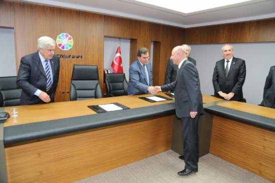 Kayseri Esnaf Sanatkar Odaları Birliği (KESOB) Başkanı Ahmet Övünç ve oda başkanları Başkan Ahmet Çolakbayrakdar’ı ziyaret ederek, ’Hayırlı Olsun’ dileklerinde bulundu.