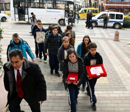 18 Mart Şehitleri Anma ve Çanakkale Deniz Zaferi’nin 100. yıl dönümü dolayısıyla Cumhurbaşkanı Recep Tayyip Erdoğan’a teslim edilmek üzere Çanakkale’den alınan deniz suyu, toprak ve Türk bayrağı, Çanakkaleli atletler tarafından Balıkesir ilini temsilen Bandırmalı atletlere teslim edildi.