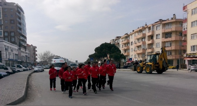 Çanakkale Deniz Zaferi’nin 100. yıl dönümü ve ’’Zafer Haftası’’ kutlamaları dolayısıyla Gelibolu Yarımadası’ndan alınan toprak ve deniz suyu ile Türk bayrağı, atletler tarafından Lapseki ilçesinden geçirildi.