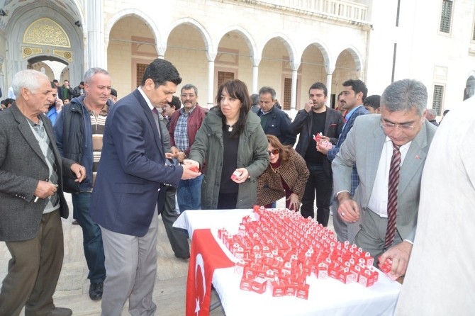Milliyetçi Hareket Partisi (MHP) Adana İl Başkanlığı tarafından Cuma namazı çıkışı vatandaşlara hurma dağıtıldı.