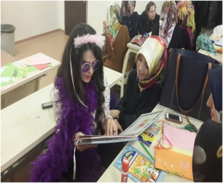 Defne Ongun Müminoğlu çocukluk döneminde kitapla erken tanışmanın önemi konusunda öğrencilerle sohbet etti. Çocuklara kitap okurken etkileşim kurulması gerektiğini, yeri geldiğinde karakterlerle özdeşleşerek hikaye aktarımının daha verimli olduğunu belirten Müminoğlu, yüksekokul öğrencilerine kendi yazmış olduğu “Burcu ve Berk” serisi kitaplarını kullanarak uygulamalı kitap okuma tekniklerini gösterdi. Ayrıca kitap okuma sırasında kullandığı aksesuarlar öğrenciler tarafından kullanılarak grup çalışması halinde hikaye okuma etkinliği düzenledi. Sunumun ardından Defne Müminoğlu “Burcu ve Berk” serisi kitaplarını yüksekokul Çocuk Gelişimi Programı öğrencileri için imzaladı.