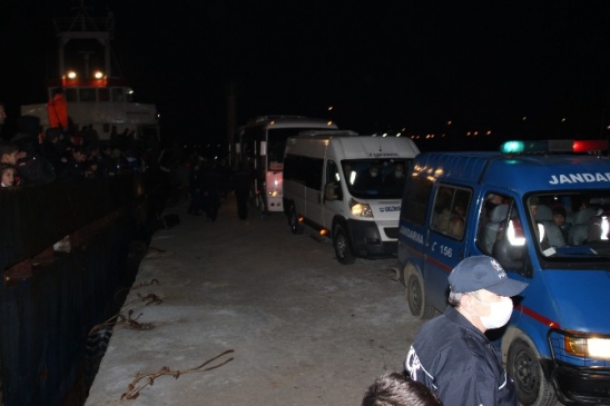 Sahil Güvenlik Komutanlığı’nın 7 botla Çanakkale Boğazı girişi Gelibolu önlerinde ateş açarak durdurduğu Doğan Kartal adlı kuru yük gemisinde bulunan yaklaşık 500 mülteci, sahil güvenlik ekipleri ve polis nezaretinde tahliye edildi. Gelibolu iskelesine yanaştırılan gemide, ilk önce sahil güvenlik ekipleri arama yaptı. Geminin çeşitli bölümlerinde bulunan çoğunluğu Suriye uyruklu, aralarında kadın, çocuk ve kundakta bebeklerin de olduğu yaklaşık 500 kaçak, geminin güvertesinde toplandı. Kaçakların tamamının güvertede toplanmasının ardından, önce kadın ve çocuklar, ardından gemideki diğer kaçaklar, jandarma, polis ve sivil araçlara bindirilerek Spor salonuna götürüldü. Tahliye işlemi esnasında, bazı kaçakların basın mensuplarıyla şakalaşması dikkat çekti. İstanbul’dan İtalya’ya gitmek istediklerini söyleyen bir mültecinin yanına gelen bir başkası basın mensuplarına, İngilizce olarak ‘İngilizce biliyor musunuz?’ diye sordu. Evet cevabı almasının ardından ise yine İngilizce olarak ‘Ama ben bilmiyorum’ diyip gülerek ayrıldı. Bu esnada, hemen yan tarafında yanında eşi ve 2 çocuğu bulunan bir kadın ise ağlamaya başladı. Spor salonuna götürülen kaçaklar, geceyi burada geçirecek ardından ise gerekli işlemler başlatılacak.