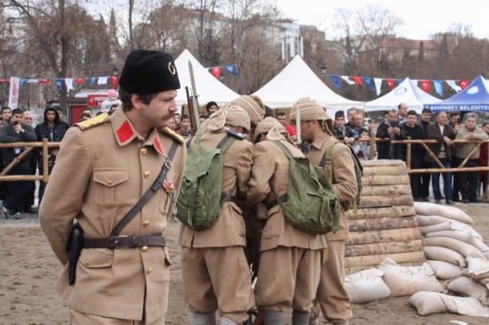 Çanakkale Savaşı Destanı Canlı Sinema Etkinlikleri Demokrasi Meydanı’nda üç gündür sürüyor. Etkinliklere katılanlar, Çanakkale’de yazılan destana adeta şahitlik ediyor. Şahinbey Belediyesi’nin organize ettiği etkinlikler vatandaşlar tarafından yoğun ilgi görüyor. Demokrasi Meydanı’nda her gün saat 10.00’da başlayıp birer saat arayla günde 5 seans şeklinde sergilenen etkinlikler pazar gününe kadar devam edecek.