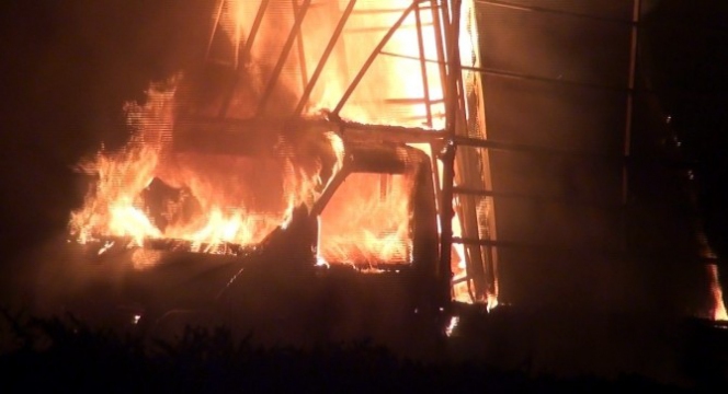 Şanlıurfa-Diyarbakır karyolunda kırmızı ışıkta bekleyen mobilya yüklü kamyonet bir anda alev aldı. Mobilyaların küle döndüğü yangın itfaiye ekipleri tarafından söndürüldü.