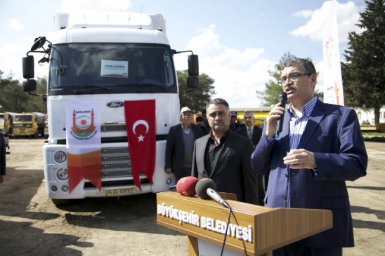 Güvenç, gelen araçları hiç bir ayrım yapmadan ilçe belediyelerine bölüştürdüklerini belirterek, "Suriye’de yaşanan olumsuz olaylardan sonra Türkiye’ye gelen 2 milyon Suriyeli misafirden 500 bin Suriyeli Şanlıurfa’da yaşamaktadır. Bu duruma Hükumetimiz ve Türkiye Belediyeler Birliği duyarsız kalmadı. Suriyeli Misafirlerimize hizmet edip ek bir yükün altına giren belediyelerimize yardım kararı alınarak geçen günlerde Kilis, Gaziantep, Hatay ve Şanlıurfa’ya 15 milyon lira maddi yardımda bulundu. Maddi desteği valiliklerimiz aracılığıyla yardım dağılımına göre belediyelerimize dağıtacaklar. Araç desteğinde bulunulan diğer iller içerisinde aslan payı en çok yükün altına giren Şanlıurfa’ya verildi. Bugün burada gelen araçlarımızı ilgili dairelerimize teslim edeceğiz. 1 adet mobil mutfak TIR’ı, 1 adet çöp kamyonu ve 4 adet vidanjörü ve Büyükşehir Belediyesi’ne gelen 8 farklı aracı ise ilçe belediyelerimize hiç bir ayrım gözetmeden ihtiyaçları çerçevesinde hediye ettik” şeklinde konuştu.