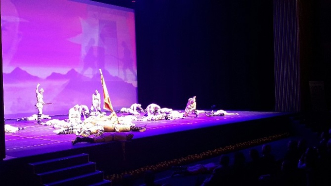 Yaklaşık bir saat süren gösteri boyunca Anadolu’nun dört bir yanından kültürel motifler, Kafkas Kartalları ekibinin teatral gösterisiyle sahnelendi. Savaşın hatıralarda kalan çarpıcı sahnelerinin de sergilendiği gösteri, izleyiciler tarafından büyük alkış topladı.