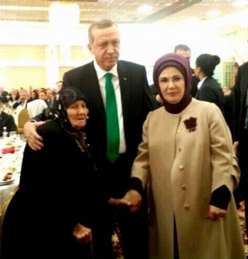 Cumhurbaşkanı Recep Tayyip Erdoğan, eşi Emine Erdoğan ile birlikte Balıkesir’in en yaşlı kadını ile hatıra fotoğraf çektirdi.