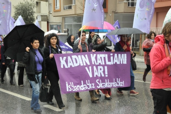Muğla’daki yürüyüş esnasında havanın yağışlı olması kadınları etkilemedi.