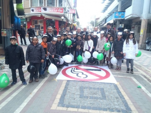 Bursa’nın Karacabey ilçesindeki Ömer Matlı İlkokulu öğrencileri, sigaraya savaş açtı.
