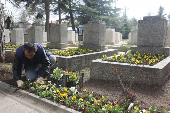 Eskişehir Büyükşehir Belediyesi, şehitlerin ebedi istirahatgahlarını çiçeklerle donatıyor.