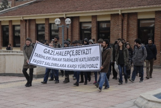 Eskişehir Anadolu Üniversitesi’nde bir grup öğrenci, Beyazıt Katliamı’nı protesto etti.